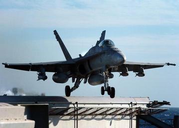 | Keywords: US Navy 041125-N-4308O-053 An F-A-18A Hornet assigned to the Silver Eagles of Marine Fighter Attack Squadron One One Five (VMFA-115), launches from aboard the Nimitz-class aircraft carrier USS Harry S. Truman (CVN 75).jpg en Persian Gulf Nov 25 2004 - An F/A-18A Hornet assigned to the Silver Eagles of Marine Fighter Attack Squadron One One Five VMFA-115 launches from aboard the Nimitz-class aircraft carrier USS Harry S Truman CVN 75 Truman's Carrier Strike Group Ten CSG-10 and her embarked Carrier Airwing Three CVW-3 are currently on a scheduled deployment in support of the Global War on Terrorism U S Navy photo by Photographer's Mate Airman Ryan O'Connor RELEASED 2004-11-25 041125-N-4308O-053 Navy http //www navy mil/view_image asp id 19217 U S Navy photo by Photographer's Mate Airman Ryan O'Connor PD-USGov-Military-Navy Aboard USS Harry S Truman CVN-75 |