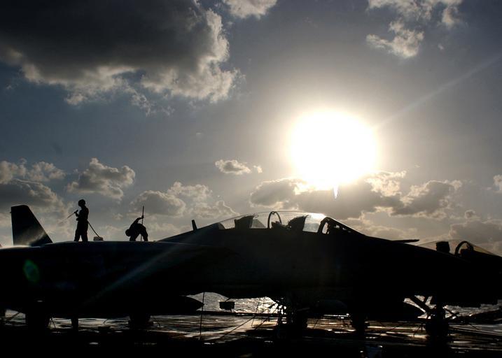 | Keywords: US Navy 041202-N-2984R-082 Two Sailors wash one of their squadron's F-14B Tomcats aboard the Nimitz-class aircraft carrier USS Harry S. Truman (CVN 75) during a no-fly day.jpg en Persian Gulf Dec 2 2004 - Two Sailors assigned to the Swordsmen of Fighter Squadron Three Two VF-32 wash one of their squadron's F-14B Tomcats aboard the Nimitz-class aircraft carrier USS Harry S Truman CVN 75 during a no-fly day Truman's Carrier Strike Group Ten CSG-10 and her embarked Carrier Air Wing Three CVW-3 are currently on a scheduled deployment in support of the Global War on Terrorism U S Navy photo by Photographer's Mate Airman Apprentice Ricardo J Reyes RELEASED 2004-12-02 041202-N-2984R-082 Navy http //www navy mil/view_image asp id 19419 U S Navy photo by Photographer's Mate Airman Apprentice Ricardo J Reyes PD-USGov-Military-Navy F-14B Tomcat on flight decks Fighter Squadron 32 United States Navy USS Harry S Truman CVN-75 flight deck |