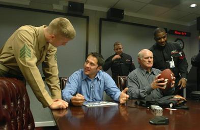 | Keywords: US Navy 041208-N-2383B-240 NASCAR Bush Series 2003 Rookie of the Year driver David Stremme and National Football League (NFL) Hall of Fame Quarterback Terry Bradshaw sign autographs during a visit to the Pentagon.jpg en Washington DC Dec 8 2004 - NASCAR Bush Series 2003 Rookie of the Year driver David Stremme and National Football League NFL Hall of Fame Quarterback Terry Bradshaw sign autographs during a visit to the Pentagon The NASCAR team of FitzBradshaw Racing stopped by the Pentagon to sign autographs for the Sailors and Marines and personally thank them for their service to the country U S Navy photo by Chief Photographer's Mate Johnny Bivera RELEASED 2004-12-08 041208-N-2383B-240 Navy http //www navy mil/view_image asp id 19507 U S Navy photo by Chief Photographer's Mate Johnny Bivera PD-USGov-Military-Navy Interior of The Pentagon David Stremme Terry Bradshaw |