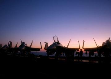 | Keywords: US Navy 041211-N-5345W-012 F-A-18 Hornets are lined up along the bow aboard the Nimitz-class aircraft carrier USS Harry S. Truman (CVN 75), prior to the commencement of night time flight operations in the Persian Gulf.jpg en Persian Gulf Dec 11 2004 - F/A-18 Hornets are lined up along the bow aboard the Nimitz-class aircraft carrier USS Harry S Truman CVN 75 prior to the commencement of night time flight operations in the Persian Gulf Carrier Air Wing Three CVW-3 embarked aboard Truman is providing close air support and conducting intelligence surveillance and reconnaissance ISR missions over Iraq Truman's Carrier Strike Group Ten CSG-10 and her embarked Carrier Air Wing Three CVW-3 are on a regularly scheduled deployment in support of the Global War on Terrorism U S Navy photo by Photographer's Mate Airman Kristopher Wilson RELEASED 2004-12-11 041211-N-5345W-012 Navy http //www navy mil/view_image asp id 19700 U S Navy photo by Photographer's Mate Airman Kristopher Wilson PD-USGov-Military-Navy Aboard USS Harry S Truman CVN-75 |