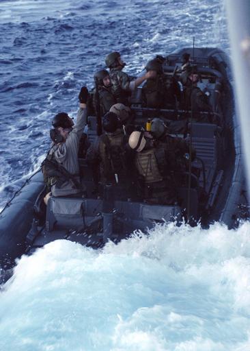 Keywords: US Navy 041213-N-5376G-061 U.S. Navy Seals speed past the port side of the guided missile cruiser USS Shiloh (CG 67) in a Rigid Hull Inflatable Boat (RHIB), while conducting small boat operations.jpg en Pacific Ocean Dec 13 2004 U S Navy Seals speed past the port side of the guided missile cruiser USS Shiloh CG 67 in a Rigid Hull Inflatable Boat RHIB while conducting small boat operations Shiloh is currently deployed to the Western Pacific Ocean with the USS Abraham Lincoln CVN 72 Carrier Strike Group U S Navy photo by Photographer s Mate 3rd Class Benjamin Glass RELEASED 2004-12-13 041213-N-5376G-061 Navy http //www navy mil/view_image asp id 19590 U S Navy photo by Photographer s Mate 3rd Class Benjamin Glass PD-USGov-Military-Navy Rigid-hulled inflatable boats of US Navy Aboard USS Abraham Lincoln CVN-72 |