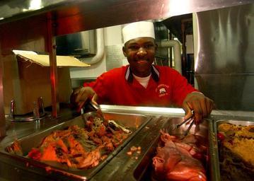 | Keywords: US Navy 041225-N-4953E-034 Culinary Specialist Seaman Demarcos Blow, serves turkey and ham during the Christmas dinner aboard the guided missile cruiser USS Monterey (CG 61) on Christmas Day.jpg en Persian Gulf Dec 25 2004 - Culinary Specialist Seaman Demarcos Blow serves turkey and ham during the Christmas dinner aboard the guided missile cruiser USS Monterey CG 61 on Christmas Day Monterey is assigned to Carrier Strike Group Ten CSG-10 and is currently on a regularly scheduled deployment in support of the Global War on Terrorism U S Navy photo by Photographer's Mate 2nd Class Danny Ewing Jr RELEASED 2004-12-25 041225-N-4953E-034 Navy http //www navy mil/view_image asp id 20057 U S Navy photo by Photographer's Mate 2nd Class Danny Ewing Jr PD-USGov-Military-Navy Culinary specialist United States Navy Aboard USS Monterey CG-61 Photographs by Danny Ewing Jr |