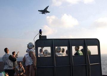 | Keywords: US Navy 041226-N-2805L-067 U.S. Air Force officers observe a wave-off of an F-A-18 Hornet from the Landing Signal Officer (LSO) platform during a visit to the Nimitz-class aircraft carrier USS Harry S. Truman (CVN 75).jpg en Persian Gulf Dec 26 2004 - U S Air Force officers observe a wave-off of an F/A-18 Hornet from the Landing Signal Officer LSO platform during a visit to the Nimitz-class aircraft carrier USS Harry S Truman CVN 75 Embarked Carrier Air Wing Three CVW-3 is providing close air support and conducting intelligence surveillance and reconnaissance missions over Iraq The Truman Strike Group and CVW-3 are on a regularly scheduled deployment in support of the Global War on Terrorism U S Navy photo by Photographer's Mate Airman Lilliana La Vende RELEASED 2004-12-26 041226-N-2805L-067 Navy http //www navy mil/view_image asp id 20055 U S Navy photo by Photographer's Mate Airman Lilliana La Vende PD-USGov-Military-Navy Aboard USS Harry S Truman CVN-75 |