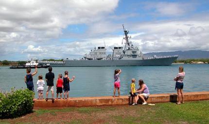 | Keywords: US Navy 042806-N-0373Q-855 Family members at Hickam Air Force Base welcome the Arleigh Burke-class guided missile destroyer USS John Paul Jones (DDG 53).jpg en Naval Station Pearl Harbor Hawaii June 29 2004 - Family members at Hickam Air Force Base welcome the Arleigh Burke-class guided missile destroyer USS John Paul Jones DDG 53 as the ship transits the channel into Pearl Harbor Hawaii John Paul Jones is visiting Pearl Harbor to take part in Rim of the Pacific RIMPAC 2004 RIMPAC is the largest international maritime exercise in the waters around the Hawaiian Islands This years exercise includes seven participating nations; Australia Canada Chile Japan South Korea the United Kingdom and the United States RIMPAC is intended to enhance the tactical proficiency of participating units in a wide array of combined operations at sea while enhancing stability in the Pacific Rim region U S Navy photo by Journalist 2nd Class Mario A Quiroga RELEASED For more information go to <a href http //www cpf navy mil/RIMPAC2004 Target _BLANK >http //www cpf navy mil/RIMPAC2004</a>/ 2004-06-29 042806-N-0373Q-855 Navy http //www navy mil/view_image asp id 15588 U S Navy photo by Journalist 2nd Class Mario A Quiroga PD-USGov-Military-Navy USS John Paul Jones DDG-53 at Pearl Harbor RIMPAC 2004 USS John Paul Jones DDG-53 |