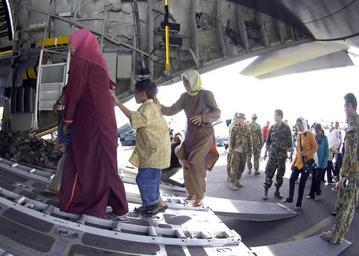 | Keywords: US Navy 050105-N-5376G-004 Australian Military personnel help Tsunami victims board a C-130 Hercules aircraft prior to being flown from Sultan Iskandar Muda Air Force Base in Banda Aceh, Indonesia to Jakarta, Indonesia.jpg en Aceh Sumatra Indonesia Jan 5 2005 Australian Military personnel help Tsunami victims board a C-130 Hercules aircraft prior to being flown from Sultan Iskandar Muda Air Force Base in Banda Aceh Indonesia to Jakarta Indonesia Medical teams from USS Abraham Lincoln CVN 72 Carrier Air Wing Two CVW-2 and the International Organization for Migration IOM set-up a triage site located on Sultan Iskandar Muda Air Force Base in Banda Aceh Sumatra The two teams worked together with members of the Australian Air Force to provide initial medical care to victims of the Tsunami-stricken coastal regions The Abraham Lincoln Carrier Strike Group is currently operating in the Indian Ocean off the waters of Indonesia and Thailand in support of Operation Unified Assistance U S Navy photo by Photographer s Mate 3rd Class Benjamin D Glass RELEASED 2005-01-05 050105-N-5376G-004 Navy http //www navy mil/view_image asp id 20187 U S Navy photo by Photographer s Mate 3rd Class Benjamin D Glass PD-USGov-Military-Navy Sultan Iskandar Muda International Airport Humanitarian aid in Indonesia |