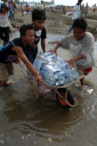 | Keywords: US Navy 050111-N-9885M-129 Indonesian kids carry bottles of drinking water in a wheelbarrow after receiving it from U.S. Sailors and Marines who offloaded relief supplies from a Landing Craft Air Cushion (LCAC).jpg en Meulaboh Sumatra Indonesia Jan 11 2005 - Indonesian kids carry bottles of drinking water in a wheelbarrow after receiving it from U S Sailors and Marines who offloaded relief supplies from a Landing Craft Air Cushion LCAC The LCACs of Assault Craft Unit Five ACU-5 are assigned to the USS Bonhomme Richard LHD 6 Expeditionary Strike Group currently operating in the Indian Ocean off the waters of Indonesia and Thailand in support of Operation Unified Assistance the humanitarian operation effort in the wake of the Tsunami that struck South East Asia U S Navy photo by Photographer s Mate 1st Class Alan D Monyelle RELEASED 2005-01-11 050111-N-9885M-129 Navy http //www navy mil/view_image asp id 20521 U S Navy photo by Photographer s Mate 1st Class Alan D Monyelle PD-USGov-Military-Navy Images from US Navy location Meulaboh Sumatra Indonesia Humanitarian aid in Indonesia Aboard USS Bonhomme Richard LHD-6 |