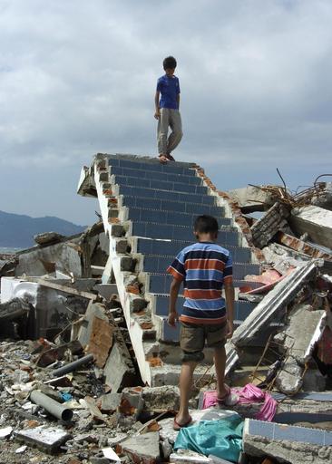 Keywords: US Navy 050114-N-6817C-261 Young children of Banda Aceh, Sumatra, play on the only piece that remains of their home when a devastating tsunami hit the region Dec. 26.jpg en Indonesia Jan 14 2005 - Young children of Banda Aceh Sumatra play on the only piece that remains of their home when a devastating tsunami hit the region Dec 26 U S Military personnel are assisting local authorities using helicopters to transport supplies bringing in disaster relief teams and to support humanitarian airlifts to tsunami-stricken coastal regions The Abraham Lincoln Carrier Strike Group and her embarked Carrier Air Wing Two CVW-2 are currently operating in the Indian Ocean region off the coast of Indonesia and Thailand U S Navy photo by Photographer's Mate 3rd Class Tyler J Clements RELEASED 2005-01-14 050114-N-6817C-261 Navy http //www navy mil/view_image asp id 20630 U S Navy photo by Photographer's Mate 3rd Class Tyler J Clements PD-USGov-Military-Navy United States Navy images from Indonesia Children of Indonesia People on stairs Ruins in Indonesia Effects of the 2004 Indian Ocean tsunami on Sumatra |
