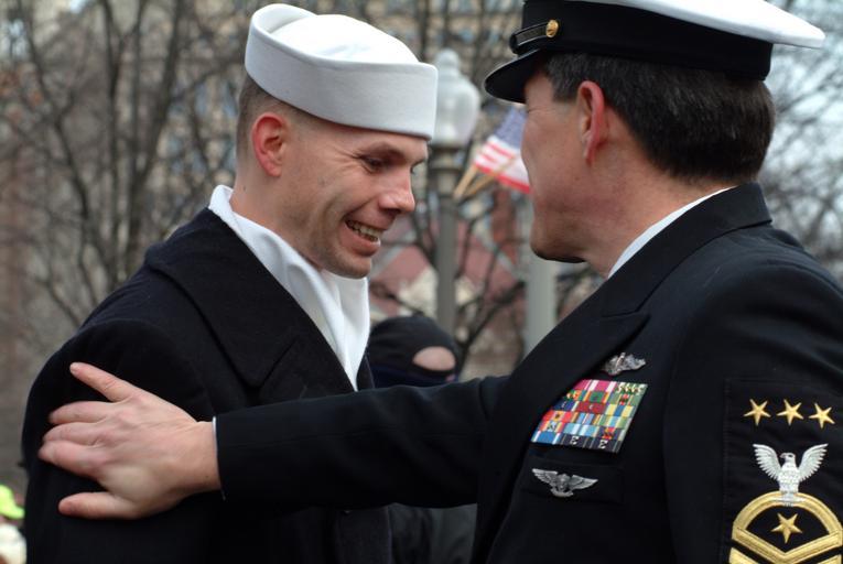 | Keywords: US Navy 050120-N-0962S-063 Master Chief Petty Officer of the Navy (MCPON) Terry Scott gives a congratulatory pat on the shoulder to one of the hundreds of Sailors who helped line the street cordon down Pennsylvania Avenue for t.jpg  en Washington D C Jan 20 2005 - Master Chief Petty Officer of the Navy MCPON Terry Scott gives a congratulatory pat on the shoulder to one of the hundreds of Sailors who helped line the street cordon down Pennsylvania Avenue for the Inauguration Day Parade held in Washington D C More than 5 000 men and women in uniform took part in the 55th Presidential Inauguration U S Navy photo by Journalist 2nd Class Brandan W Schulze RELEASED 2005-01-20 050120-N-0962S-063 Navy http //www navy mil/view_image asp id 21043 U S Navy photo by Journalist 2nd Class Brandan W Schulze PD-USGov-Military-Navy People of the United States Navy George W Bush 2005 presidential inauguration Terry D Scott |