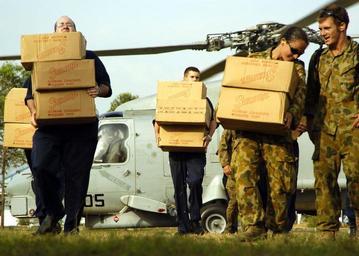| Keywords: US Navy 050127-N-0057P-068 Sailors assigned to USS Abraham Lincoln (CVN 72) and members of the Royal Australian Army unload boxes of relief supplies from an SH-60B Seahawk helicopter.jpg en Banda Aceh Sumatra Indonesia Jan 27 2005 - Sailors assigned to USS Abraham Lincoln CVN 72 and members of the Royal Australian Army unload boxes of relief supplies from an SH-60B Seahawk helicopter assigned to the Saberhawks of Helicopter Anti-Submarine Light Squadron Four Seven HSL-47 The Abraham Lincoln Carrier Strike group is currently operating in the Indian Ocean off the waters of Indonesia and Thailand in support of Operation Unified Assistance the humanitarian operation effort in the wake of the Tsunami that struck South East Asia U S Navy photo by Photographer s Mate 2nd Class Seth C Peterson RELEASED 2005-01-27 050127-N-0057P-068 Navy http //www navy mil/view_image asp id 21215 U S Navy photo by Photographer s Mate 2nd Class Seth C Peterson PD-USGov-Military-Navy Banda Aceh |