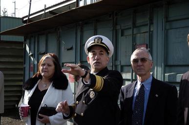 | Keywords: US Navy 050205-N-7676W-657 Chief of Naval Research, Rear Adm. Jay M. Cohen, center, conducts a tour of the experimental Littoral Surface Craft-Experimental (X-Craft), Sea Fighter (FSF 1), for Secretary of the Navy (SECNAV) Gord.jpg en Whidbey Island Wash Feb 5 2005 Chief of Naval Research Rear Adm Jay M Cohen center conducts a tour of the experimental Littoral Surface Craft-Experimental X-Craft Sea Fighter FSF 1 for Secretary of the Navy SECNAV Gordon R England and Ship s Sponsor Mrs Lynn Hunter prior to christening ceremonies at Nichols Bros Boat Builders in Freeland Wash Sea Fighter will be used to evaluate the hydrodynamic performance structural behavior mission flexibility and propulsion system of high-speed vessels The X-Craft is a high-speed aluminum catamaran that will test a variety of technologies which will allow the Navy to operate more effectively in littoral or near-shore waters U S Navy photo by John F Williams RELEASED 2005-02-05 050205-N-7676W-657 Navy http //www navy mil/view_image asp id 21592 U S Navy photo by John F Williams PD-USGov-Military-Navy Naval Air Station Whidbey Island Ship christenings in the United States Navy Sea Fighter ship 2005 Jay Cohen 2005 in Washington state |