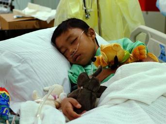 | Keywords: US Navy 050214-N-0357S-060 An 11-year old Indonesian boy rests in a hospital bed in the Intensive Care Unit aboard the Military Sealift Command (MSC) hospital ship USNS Mercy (T-AH 19).jpg en Indian Ocean Feb 14 2005 - An 11-year old Indonesian boy rests in a hospital bed in the Intensive Care Unit aboard the Military Sealift Command MSC hospital ship USNS Mercy T-AH 19 The boy was found floating in the ocean two days after the tsunami struck his home of Banda Aceh on the island of Sumatra Indonesia Shortly after Mercy arrived on station off the coast of Banda Aceh the boy was flown to the ship to receive treatment for an acute case of aspiration pneumonia He is expected to make a full recovery Mercy is serving as an enabling platform to assist humanitarian operations ashore in ways that host nations and international relief organization find useful Mercy is currently off the waters of Indonesia in support of Operation Unified Assistance the humanitarian relief effort to aid the victims of the tsunami that struck Southeast Asia U S Navy photo by Journalist 1st Class Joshua Smith RELEASED 2005-02-14 050214-N-0357S-060 Navy http //www navy mil/view_image asp id 21888 U S Navy photo by Journalist 1st Class Joshua Smith PD-USGov-Military-Navy People in bed Boys of Indonesia Hospital beds 11-year-old human males Intensive-care units |