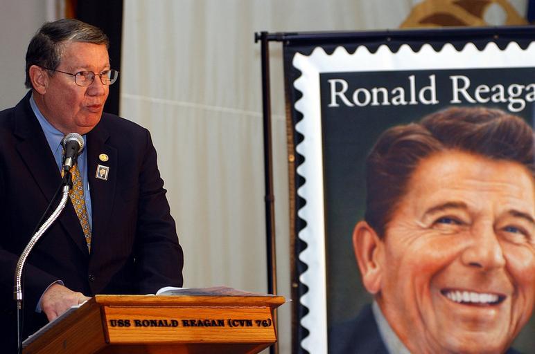 Keywords: US Navy 050218-N-6908P-003 Congressman Randy Duke Cunningham (R-CA) delivers a speech during a dedication ceremony for the President Ronald Reagan postage stamp.jpg en San Diego Calif Feb 18 2005 - Congressman Randy Duke Cunningham R-CA delivers a speech to crew and guests in the hanger bay aboard the Nimitz-class aircraft carrier USS Ronald Reagan CVN 76 during a dedication ceremony for the President Ronald Reagan postage stamp Ronald Reagan is currently in her homeport of San Diego Calif preparing for an upcoming inspection and survey INSURV U S Navy photo by Photographer's Mate 2nd Class Samuel J Price RELEASED 2005-02-18 050218-N-6908P-003 Navy http //www navy mil/view_image asp id 22194 U S Navy photo by Photographer's Mate 2nd Class Samuel J Price PD-USGov-Military-Navy Guests aboard USS Ronald Reagan CVN-76 Duke Cunningham |