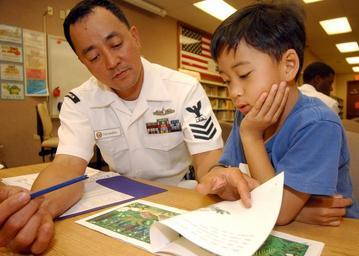| Keywords: US Navy 050222-N-3019M-001 Culinary Specialist 1st Class Davidson Cervantes, assigned to the guided missile frigate USS Crommelin (FFG 37), helps a child read a book at Holomua Elementary School in Ewa Beach, Hawaii.jpg en Pearl Harbor Hawaii Feb 22 2005 - Culinary Specialist 1st Class Davidson Cervantes assigned to the guided missile frigate USS Crommelin FFG 37 helps a child read a book at Holomua Elementary School in Ewa Beach Hawaii Crommelin has a partnership in education with the school helping tutor children paint classrooms and various other beautification projects U S Navy photo by Journalist 3rd Class Ryan C McGinley RELEASED 2005-02-22 050222-N-3019M-001 Navy http //www navy mil/view_image asp id 22137 U S Navy photo by Journalist 3rd Class Ryan C McGinley PD-USGov-Military-Navy Culinary specialist United States Navy People at Pearl Harbor Images from US Navy location Pearl Harbor Hawaii 2005 in Pearl Harbor USS Crommelin FFG-37 |
