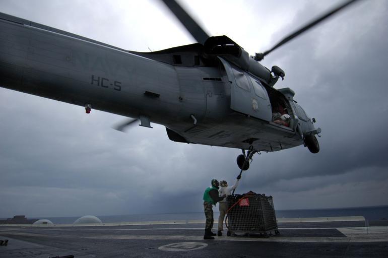 Keywords: US Navy 050222-N-5781F-137 Supply personnel connect cargo nets to an MH-60S Seahawk helicopter, assigned to the Providers of Helicopter Combat Support Squadron Five (HC-5).jpg en Pacific Ocean Feb 22 2005 - Supply personnel connect cargo nets to an MH-60S Seahawk helicopter assigned to the Providers of Helicopter Combat Support Squadron Five HC-5 during a vertical replenishment aboard the conventionally-powered aircraft carrier USS Kitty Hawk CV 63 Kitty Hawk demonstrates power projection and sea control as the U S Navy's only forward-deployed aircraft carrier operating from Yokosuka Japan U S Navy photo by Photographer's Mate 3rd Class Bo Flannigan RELEASED 2005-02-22 050222-N-5781F-137 Navy http //www navy mil/view_image asp id 22215 U S Navy photo by Photographer's Mate 3rd Class Bo Flannigan PD-USGov-Military-Navy Aboard USS Kitty Hawk CV-63 MH-60S helihoisting cargo