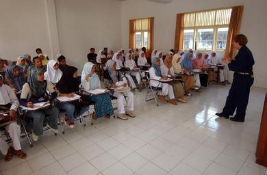 | Keywords: US Navy 050223-N-8796S-006 Cmdr. Suzanne Clark, a U.S. Navy Nurse assigned to the Military Sealift Command (MSC) hospital ship USNS Mercy (T-AH 19), gives a lecture on diabetes to Indonesian nursing students at the University H.jpg en Banda Aceh Sumatra Indonesia Feb 23 2005 - Cmdr Suzanne Clark a U S Navy Nurse assigned to the Military Sealift Command MSC hospital ship USNS Mercy T-AH 19 gives a lecture on diabetes to Indonesian nursing students at the University Hospital in Banda Aceh on the island of Sumatra Indonesia Mercy is serving as an enabling platform to assist humanitarian operations ashore in ways that host nations and international relief organization find useful Mercy is currently off the waters of Indonesia in support of Operation Unified Assistance the humanitarian relief effort to aid the victims of the tsunami that struck Southeast Asia U S Navy photo by Photographer's Mate 2nd Class Timothy Smith RELEASED 2005-02-23 050223-N-8796S-006 Navy http //www navy mil/view_image asp id 22148 U S Navy photo by Photographer's Mate 2nd Class Timothy Smith PD-USGov-Military-Navy Banda Aceh |