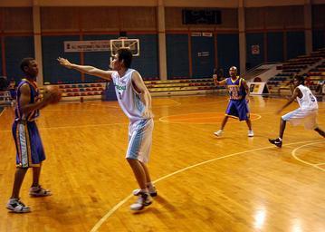 | Keywords: US Navy 050304-N-7526R-068 Machinist Mate Fireman Michael Garcia, left, gets checked by a defender during a basketball game between USS Blue Ridge (LCC-19) crew members and a Malaysian Amateur Basketball Association team.jpg en Kuala Lumpur Malaysia Mar 4 2005 - Machinist Mate Fireman Michael Garcia left gets checked by a defender during a basketball game between USS Blue Ridge LCC-19 crew members and a Malaysian Amateur Basketball Association team Blue Ridge flagship of the U S Seventh Fleet visited Malaysia for a scheduled port call While in port the ship's approximately 1 000 Sailors Marines and staff members conducted community service projects and learned more about the Malay culture U S Navy photo by Journalist Seaman Apprentice Marc Rockwell-Pate RELEASED 2005-03-04 050304-N-7526R-068 Navy http //www navy mil/view_image asp id 22486 U S Navy photo by Journalist Seaman Apprentice Marc Rockwell-Pate PD-USGov-Military-Navy Images from US Navy location Kuala Lumpur Malaysia |