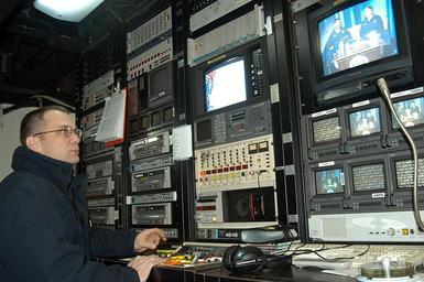 | Keywords: US Navy 050309-N-8584T-001 Journalist 1st Class Christopher Tucker directs the daily morning television program JFK Today from the Television Studio aboard the conventionally powered aircraft carrier USS John F. Kennedy (CV 67).jpg en Atlantic Ocean Mar 9 2005 - Journalist 1st Class Christopher Tucker directs the daily morning television program JFK Today from the Television Studio aboard the conventionally powered aircraft carrier USS John F Kennedy CV 67 The Mayport Fla based aircraft carrier is conducting scheduled carrier qualifications in the Atlantic Ocean U S Navy photo by Photographer s Mate Airman Erica Trieder RELEASED 2005-03-09 050309-N-8584T-001 Navy http //www navy mil/view_image asp id 22604 U S Navy photo by Photographer s Mate Airman Erica Trieder PD-USGov-Military-Navy Aboard USS John F Kennedy CV-67 |