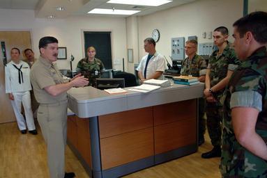 | Keywords: US Navy 050310-N-0962S-030 Master Chief Petty Officer of the Navy (MCPON) Terry Scott speaks to a group of Hospital Corpsmen manning the emergency room at U.S. Naval Hospital Guantanamo Bay, Cuba.jpg en Guantanamo Bay Cuba Mar 10 2005 - Master Chief Petty Officer of the Navy MCPON Terry Scott speaks to a group of Hospital Corpsmen manning the emergency room at U S Naval Hospital Guantanamo Bay Cuba The visit to Cuba gave MCPON the opportunity to interact answer questions and thank those Sailors directly supporting the Global War on Terrorism U S Navy photo by Journalist 2nd Class Brandan W Schulze RELEASED 2005-03-10 050310-N-0962S-030 Navy http //www navy mil/view_image asp id 22727 U S Navy photo by Journalist 2nd Class Brandan W Schulze PD-USGov-Military-Navy Guantanamo Bay Naval Base medical care Terry D Scott |