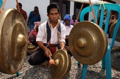 | Keywords: US Navy 050325-N-6665R-055 An Indonesian man from one of the villages of Alor, Indonesia, plays an instrument during their ceremonial song and dance.jpg en Alor Indonesia Mar 25 2005 - An Indonesian man from one of the villages of Alor Indonesia plays an instrument during their ceremonial song and dance to express their excitement and appreciation to members of Mobile Security Team Detachment Seven in Kalabahi Alor by performing traditional songs and dance The Military Sealift Command MSC hospital ship USNS Mercy T-AH 19 is currently off the coast of Alor Indonesia to provide humanitarian assistance and focus medical care to thousands of people displaced by a magnitude 7 3 earthquake that struck Nov 11 2004 While ashore Mercy's crew will focus on public health primary care dental treatment preventive medicine health education and pharmaceutical support Mercy's deployment is part of the U S commitment to Southeast Asia and the Pacific Island nations U S Navy photo By Photographer's Mate 2nd Class Jeffery Russell RELEASED 2005-03-25 050325-N-6665R-055 Navy http //www navy mil/view_image asp id 23051 U S Navy photo By Photographer's Mate 2nd Class Jeffery Russell PD-USGov-Military-Navy Culture of Alor Island Gongs of Indonesia Images from US Navy location Alor Indonesia |