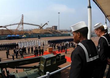 | Keywords: US Navy 050328-N-7526R-009 Sailors aboard USS Blue Ridge (LCC 19) man the rails as the ship moors to the pier at Zhanjiang, People's Republic of China.jpg en Zhanjiang People's Republic of China Mar 28 2005 - Sailors aboard USS Blue Ridge LCC 19 man the rails as the ship moors to the pier at Zhanjiang People's Republic of China The Sailors and Marines from the ship and embarked staff will take an opportunity to experience the local culture and interact with their counterparts from the People's Liberation Army and Navy Blue Ridge U S Seventh Fleet command ship is forward deployed to Yokosuka Japan U S Navy photo by Journalist Seaman Apprentice Marc Rockwell-Pate RELEASED 2005-03-28 050328-N-7526R-009 Navy http //www navy mil/view_image asp id 23074 U S Navy photo by Journalist Seaman Apprentice Marc Rockwell-Pate Aboard USS Blue Ridge LCC-19 Manning the rail in the United States Navy Images from US Navy location Zhanjiang Peoples Republic Of China River PD-USGov-Military-Navy |