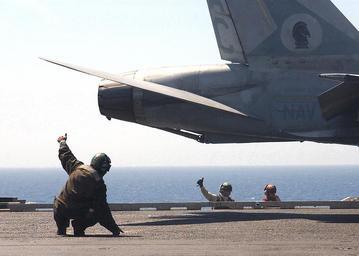 | Keywords: US Navy 050329-N-7405P-042 Final checkers give the clear to launch signal prior to an F-A-18C Hornet launch.jpg en Atlantic Ocean March 5 2005 - Final checkers give the clear to launch signal prior to an F/A-18C Hornet assigned to the Gunslingers of Strike Fighter Squadron One Zero Five VFA-105 launching from the flight deck aboard the Nimitz-class aircraft carrier USS Harry S Truman CVN 75 The Harry S Truman Carrier Strike Group recently turned over its responsibilities in the Persian Gulf to the Carl Vinson Carrier Strike Group following nearly four months on station supporting Operation Iraqi Freedom OIF U S Navy photo by Photographer's Mate Airman Greg Pierot RELEASED 2005-03-05 050329-N-7405P-042 Navy http //www navy mil/view_image asp id 23702 U S Navy photo by Photographer's Mate Airman Greg Pierot PD-USGov-Military-Navy Aboard USS Harry S Truman CVN-75 Strike Fighter Squadron 105 United States Navy |