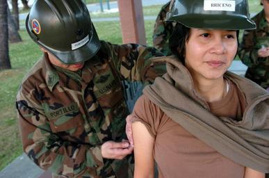 | Keywords: US Navy 050405-N-9712C-003 A Seabee receives a Japanese Encephalitis Virus vaccination from Hospital Corpsman 1st Class Mario Portillo during Naval Mobile Construction Battalion Four-Zeros (NMCB-40) morning shot calls.jpg en Okinawa Japan Apr 5 2005 - A Seabee receives a Japanese Encephalitis Virus vaccination from Hospital Corpsman 1st Class Mario Portillo during Naval Mobile Construction Battalion Four-Zeros NMCB-40 morning shot calls at Camp Shields Okinawa Shot call is a routine appointment for any personnel assigned to NMCB-40 that is due for their shot updates NMCB-40 is currently deployed to Okinawa and is working on construction projects throughout Japan and the Pacific U S Navy photo by Photographer's Mate 3rd Class John P Curtis RELEASED 2005-04-05 050405-N-9712C-003 Navy http //www navy mil/view_image asp id 23397 U S Navy photo by Photographer's Mate 3rd Class John P Curtis PD-USGov-Military-Navy Naval Mobile Construction Battalion 40 Camp Shields People being vaccinated Portillo surname |
