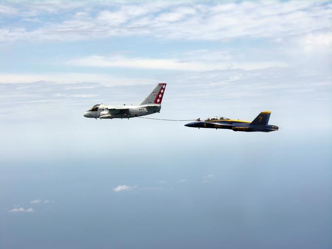 | Keywords: US Navy 050418-N-0000X-001 The Navy flight demonstration team Blue Angels plane number seven, flown by Lt. John Allison receives fuel from an S-3B Viking assigned to the Diamond Cutters of Sea Control Squadron Three Zero (VS-30.jpg en Pensacola Fla April 18 2005 The Navy flight demonstration team Blue Angels plane number seven flown by Lt John Allison receives fuel from an S-3B Viking assigned to the Diamond Cutters of Sea Control Squadron Three Zero VS-30 The Diamond Cutters completed their final deployment in December 2004 as part of Carrier Air Wing One Seven CVW-17 aboard the conventionally powered aircraft carrier USS John F Kennedy CV 67 in support of Operation Iraqi Freedom OIF U S Navy photo by Jose M Ramos RELEASED 2005-04-18 050418-N-0000X-001 Navy http //www navy mil/view_image asp id 24285 U S Navy photo PD-USGov-Military-Navy S-3B Viking Sea Control Squadron 30 United States Navy Blue Angels F/A-18 Hornet in 2005 Aerial refueling of F/A-18 Hornet |