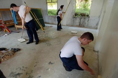 | Keywords: US Navy 050420-N-8629M-094 Information Systems Technician 2nd Class Tyler Gauthier, left, Aviation Structural Mechanic Airman Johnathan Smith, center, and Operations Specialist Seaman Apprentice Benjamin Phillips, assist with a.jpg en Nias Indonesia April 20 2005 - Information Systems Technician 2nd Class Tyler Gauthier left Aviation Structural Mechanic Airman Johnathan Smith center and Operations Specialist Seaman Apprentice Benjamin Phillips assist with a community relations project to paint and repair damaged buildings at a nursing school in Nias Indonesia At the request of the government of Indonesia the Military Sealift Command MSC hospital ship USNS Mercy T-AH 19 MSC combat stores ships USNS Niagara Falls T-AFS 3 and USNS San Jose T-AFS 7 are on station off the coast of Nias providing assistance as determined appropriate and necessary with earthquake disaster relief efforts and provide medical assistance to those in need U S Navy photo by Photographer's Mate 3rd Class Rebecca J Moat RELEASED 2005-04-20 050420-N-8629M-094 Navy http //www navy mil/view_image asp id 23788 U S Navy photo by Photographer's Mate 3rd Class Rebecca J Moat PD-USGov-Military-Navy Images from US Navy location Nias Indonesia Information Systems Technician United States Navy Aboard USNS Mercy T-AH-19 |