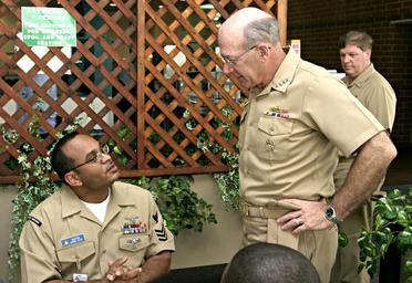 | Keywords: US Navy 050511-N-4204E-004 Chief of Naval Operations (CNO), Adm. Vern Clark, talk to Naval Air Technical Training Center (NATTC) instructor Aviation Electrician^rsquo,s Mate 1st Class Michael Santos.jpg en Pensacola Fla May 11 2005 - Chief of Naval Operations CNO Adm Vern Clark talk to Naval Air Technical Training Center NATTC instructor Aviation Electrician s Mate 1st Class Michael Santos Santos is participating in the Task Force Uniform test platform which evaluates four different uniform styles being tested through August 2005 U S Navy photo by Photographer's Mate 2nd Class Mark A Ebert RELEASED 2005-05-11 050511-N-4204E-004 Navy http //www navy mil/view_image asp id 24298 U S Navy photo by Photographer's Mate 2nd Class Mark A Ebert PD-USGov-Military-Navy Naval Air Station Pensacola Vern Clark |