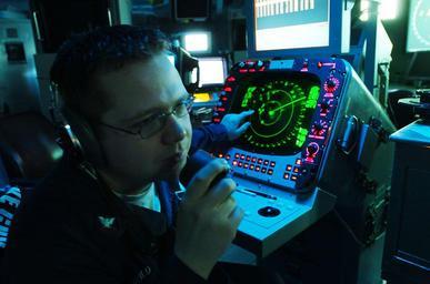 | Keywords: US Navy 050518-N-9174G-001 Operations Specialist 2nd Class Fredrick Arnold assigned aboard the Nimitz class aircraft carrier USS Dwight D. Eisenhower's (CVN 69) informs the bridge phone talker of a possible surface contact spot.jpg en Atlantic Ocean May 18 2005 - Operations Specialist 2nd Class Fredrick Arnold a native of Wickenburg Ariz assigned aboard the Nimitz class aircraft carrier USS Dwight D Eisenhower's CVN 69 informs the bridge phone talker of a possible surface contact spotted on radar Eisenhower is currently underway conducting routine carrier operations with Carrier Air Wing One CVW-1 U S Navy photo by Photographer's Mate 3rd Class Andrew S Geraci RELEASED 2005-05-18 050518-N-9174G-001 Navy http //www navy mil/view_image asp id 24485 U S Navy photo by Photographer's Mate 3rd Class Andrew S Geraci PD-USGov-Military-Navy Aboard USS Dwight D Eisenhower CVN-69 Operations Specialist United States Navy |