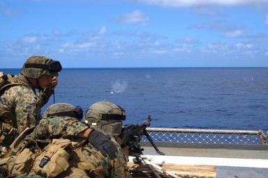 | Keywords: US Navy 050521-N-2468S-010 Marines from 2nd Fleet Anti-terrorism Security Team (FAST) Co., 3rd Platoon, display teamwork while conducting live fire machine gun drills aboard USS Blue Ridge (LCC 19).jpg en Pacific Ocean May 21 2005 - Marines from 2nd Fleet Anti-terrorism Security Team FAST Co 3rd Platoon display teamwork while conducting live fire machine gun drills aboard USS Blue Ridge LCC 19 The FAST Marines based at Naval Weapons Station Yorktown Va are deployed aboard the Seventh Fleet flagship currently underway in the South Pacific U S Navy photo by Photographer's Mate 2nd Class Terry Spain RELEASED 2005-05-21 050521-N-2468S-010 Navy http //www navy mil/view_image asp id 24709 U S Navy photo by Photographer's Mate 2nd Class Terry Spain PD-USGov-Military-Navy Aboard USS Blue Ridge LCC-19 M-240 machine gun Fleet Antiterrorism Security Team |