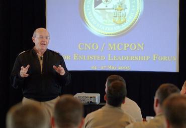 | Keywords: US Navy 050524-N-0962S-164 Chief of Naval Operations Adm. Vern Clark offers opening remarks to fleet, force, and CNO-directed Command Master Chiefs during the Spring 2005 Senior Enlisted Leadership Forum.jpg en Arlington Va May 24 2005 - Chief of Naval Operations Adm Vern Clark offers opening remarks to fleet force and CNO-directed Command Master Chiefs during the Spring 2005 Senior Enlisted Leadership Forum held in Arlington Va The senior enlisted panel lead by Master Chief Petty Officer of the Navy MCPON Terry Scott meets twice each year to address a variety of issues regarding the enlisted community U S Navy photo by Journalist 1st Class Brandan W Schulze RELEASED 2005-05-24 050524-N-0962S-164 Navy http //www navy mil/view_image asp id 24667 U S Navy photo by Journalist 1st Class Brandan W Schulze PD-USGov-Military-Navy Arlington County Virginia Vern Clark |