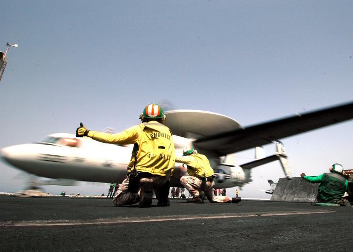 Keywords: US Navy 050603-N-3241H-005 Two flight deck shooters give the clear to launch signal as an E-2C Hawkeye assigned the.jpg en Persian Gulf June 3 2005 - Two flight deck shooters give the clear to launch signal as an E-2C Hawkeye assigned the Golden Hawks of Airborne Early Warning Squadron One Two Two VAW-112 launch from the flight deck aboard the Nimitz-class aircraft carrier USS Carl Vinson CVN 70 The Carl Vinson Carrier Strike Group is currently deployed in support of multi-national forces in Iraq and maritime security operations in order to set the conditions for security and stability in the region Vinson will end its deployment with a homeport shift to Norfolk Va and commence a three-year refuel and complex overhaul U S Navy photo by Photographer's Mate 3rd Class Dusty Howell RELEASED 2005-06-03 050603-N-3241H-005 Navy http //www navy mil/view_image asp id 25049 U S Navy photo by Photographer's Mate 3rd Class Dusty Howell PD-USGov-Military-Navy Aboard USS Carl Vinson CVN-70 Northrop Grumman E-2C Hawkeye aircraft carrier take-offs Airborne Early Warning Squadron 112 United States Navy |