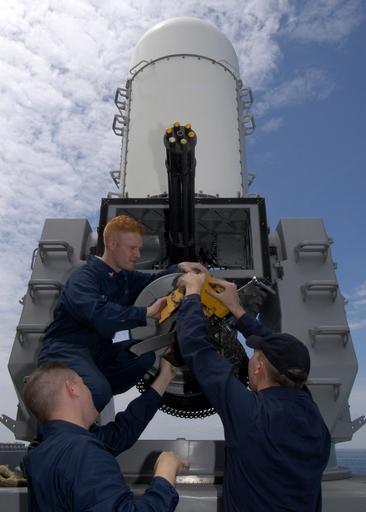| Keywords: US Navy 050613-N-8053S-014 Fire Controlman 2nd Class Jonathon S. Hill, top, Fire Controlman 1st Class Benjamin P. Carroll, left, and Fire Controlman 3rd Class John Pajtas prepare one of the three Close-in Weapons System (CIWS).jpg en Atlantic Ocean June 13 2005 - Fire Controlman 2nd Class Jonathon S Hill top Fire Controlman 1st Class Benjamin P Carroll left and Fire Controlman 3rd Class John Pajtas prepare one of the three Close-in Weapons System CIWS for firing aboard the amphibious assault ship USS Wasp LHD 1 CWIS is a fast-reaction rapid-fire 20-millimeter gun system that provides U S Navy ships with a terminal defense against anti-ship missiles that have penetrated other fleet defenses U S Navy photo by Photographer's Mate 3rd Class D Keith Simmons RELEASED 2005-06-13 050613-N-8053S-014 Navy http //www navy mil/view_image asp id 25468 U S Navy photo by Photographer's Mate 3rd Class D Keith Simmons PD-USGov-Military-Navy Maintenance of Phalanx CIWS Aboard USS Wasp LHD-1 Fire Controlman |