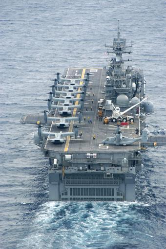 | Keywords: US Navy 050618-N-8154G-073 The amphibious assault ship USS Bataan (LHD 5) shown underway with all eight MV-22 Osprey assigned to Marine Tlitrotor Operational Test and Evaluation Squadron 22 (VMX-22).jpg en Atlantic Ocean June 18 2005 The amphibious assault ship USS Bataan LHD 5 shown underway with all eight MV-22 Osprey assigned to Marine Tlitrotor Operational Test and Evaluation Squadron 22 VMX-22 turning and ready for takeoff VMX-22 is conducting the final operational test phase of the tiltrotor aircraft The MV-22 is an advanced technology vertical/short takeoff and landing VSTOL multipurpose tactical aircraft and is scheduled to replace aging CH-46E Sea Knight and CH-53D Sea Stallion helicopters currently in service U S Navy photo by Photographer s Mate Airman Jeremy L Grisham RELEASED 2005-06-18 050618-N-8154G-073 Navy http //www navy mil/view_image asp id 25391 U S Navy photo by Photographer s Mate Airman Jeremy L Grisham PD-USGov-Military-Navy General views of USS Bataan LHD-5 MV-22B Osprey on flight decks Stern views of watercraft VMX-22 |