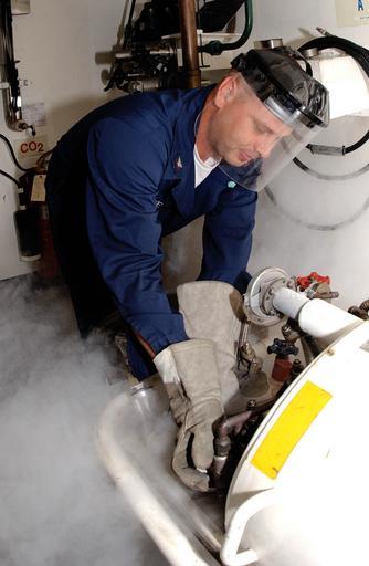 Keywords: US Navy 050624-N-0413R-004 Machinist's Mate 3rd Class Rudy Aye transfers liquid oxygen (LOX) into a TMU-70 LOX Cart aboard the nuclear-powered aircraft carrier USS Nimitz (CVN 68).jpg en Pacific Ocean June 24 2005 - Machinist's Mate 3rd Class Rudy Aye transfers liquid oxygen LOX into a TMU-70 LOX Cart aboard the nuclear-powered aircraft carrier USS Nimitz CVN 68 The cart is used to store oxygen for pilots and aircrew's breathing systems in aircraft The Nimitz Carrier Strike Group is currently on a regularly scheduled deployment in support of the Global War on Terrorism U S Navy photo by Photographer's Mate 3rd Class Shannon E Renfroe RELEASED 2005-06-24 050624-N-0413R-004 Navy http //www navy mil/view_image asp id 25630 U S Navy photo by Photographer's Mate 3rd Class Shannon E Renfroe PD-USGov-Military-Navy Aboard USS Nimitz CVN-68 |