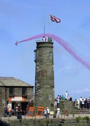 | Keywords: US Navy 050626-N-9565D-010 The British Royal Air Force aerial demonstration team, the Red Arrows, conduct a fly-by during the World War II celebration.jpg en Whitehaven Cumbria United Kingdom June 26 2005 - The British Royal Air Force aerial demonstration team the Red Arrows conduct a fly-by during the World War II celebrations at the Whitehaven Maritime Festival The festival commerates the British American Naval connections when John Paul Jones successfully attacked this port the last time England has been invaded since 1778 along with the 60th anniversary celebrations remembering World War II U S Navy photo by Photographer's Mate 2nd Class Clifford L H Davis RELEASED 2005-06-26 050626-N-9565D-010 Navy http //www navy mil/view_image asp id 25740 U S Navy photo by Photographer's Mate 2nd Class Clifford L H Davis PD-USGov-Military-Navy Images from US Navy location Whitehaven Cumbria United Kingdom Aircraft formation flight of the Red Arrows BAE Hawk in the 2000s |