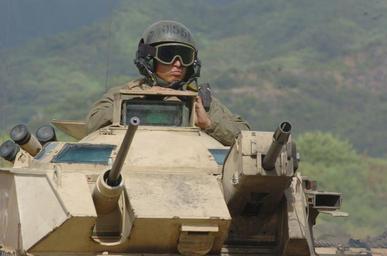 | Keywords: US Navy 050627-N-9866B-021 A Marine assigned to the 3rd Amphibious Assault Battalion based at Camp Pendelton, Calif., mans the turrets of his amphibious assault vehicle (AAV).jpg en Oahu Hawaii June 27 2005 - A Marine assigned to the 3rd Assault Amphibian Battalion based at Camp Pendelton Calif mans the turrets of his amphibious assault vehicle AAV during training in Oahu Hawaii after departing the amphibious assault ship USS Peleliu LHA 5 Sailors and Marines assigned to Peleliu are currently conducting amphibious training on the beaches of Pacific Missile Range Facility U S Navy photo by Journalist 2nd Class Zack Baddorf RELEASED 2005-06-27 050627-N-9866B-021 Navy http //www navy mil/view_image asp id 25903 U S Navy photo by Journalist 2nd Class Zack Baddorf PD-USGov-Military-Navy Marine Corps Base Hawaii Aboard USS Peleliu LHA-5 Amphibious Assault Vehicle 3rd_Assault_Amphibian_Battalion Cadillac Gage 1 metre turret Mk 19 grenade launcher |