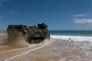 | Keywords: US Navy 050628-N-9866B-039 U.S. Marines assigned to the 3rd Amphibious Assault Battalion drive an amphibious assault vehicle (AAV) ashore on Major^rsquo,s Bay during amphibious training.jpg en Pacific Ocean June 28 2005 U S Marines assigned to the 3rd Amphibious Assault Battalion drive an amphibious assault vehicle AAV ashore on Major s Bay during amphibious training ACU-5 and Sailors from Peleliu are conducting training on the beaches of Pacific Missile Range Facility in Kauaii Hawaii U S Navy photo by Journalist 2nd Class Zack Baddorf RELEASED 2005-06-28 050628-N-9866B-039 Navy http //www navy mil/view_image asp id 25796 U S Navy photo by Journalist 2nd Class Zack Baddorf PD-USGov-Military-Navy Images from US Navy location PACIFIC OCEAN Amphibious Assault Vehicle 3rd_Assault_Amphibian_Battalion |