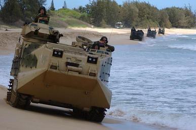 | Keywords: US Navy 050628-N-9866B-009 U.S. Marines assigned to 3rd Amphibious Assault Battalion, drive their Amphibious Assault Vehicles (AAVs) down the beach.jpg en Kauai Hawaii June 28 2005 - U S Marines assigned to 3rd Amphibious Assault Battalion drive their Amphibious Assault Vehicles AAVs down the beaches of Major's Bay during amphibious training ACU-5 and Sailors and Marines assigned to the amphibious assault ship USS Peleliu LHA 5 are currently conducting amphibious training on the beaches of Pacific Missile Range Facility on the island of Kauai Hawaii U S Navy photo by Journalist 2nd Class Zack Baddorf RELEASED 2005-06-28 050628-N-9866B-009 Navy http //www navy mil/view_image asp id 25805 U S Navy photo by Journalist 2nd Class Zack Baddorf PD-USGov-Military-Navy Pacific Missile Range Facility Barking Sands Amphibious Assault Vehicle 3rd_Assault_Amphibian_Battalion |