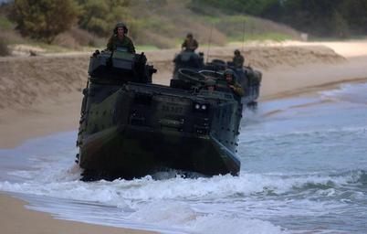 | Keywords: US Navy 050628-N-9866B-010 U.S. Marines assigned to 3rd Amphibious Assault Battalion, drive their Amphibious Assault Vehicles (AAVs) down the beach.jpg en Kauai Hawaii June 28 2005 - U S Marines assigned to 3rd Amphibious Assault Battalion drive their Amphibious Assault Vehicles AAVs down the beaches of Major's Bay during amphibious training Sailors and Marines assigned to the amphibious assault ship USS Peleliu LHA 5 are currently conducting amphibious training on the beaches of Pacific Missile Range Facility on the island of Kauai Hawaii U S Navy photo by Journalist 2nd Class Zack Baddorf RELEASED 2005-06-28 050628-N-9866B-010 Navy http //www navy mil/view_image asp id 25806 U S Navy photo by Journalist 2nd Class Zack Baddorf PD-USGov-Military-Navy Pacific Missile Range Facility Barking Sands Amphibious Assault Vehicle 3rd_Assault_Amphibian_Battalion |