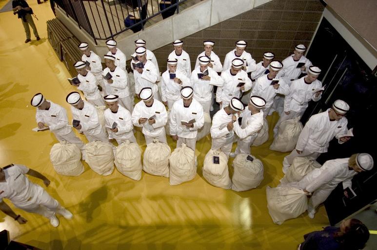 Keywords: US Navy 050629-N-9693M-767 First day Midshipmen stand at attention while reading Reef Points, the manual for Midshipmen at the United States Naval Academy in Annapolis, Md.jpg en Annapolis Md June 29 2005 - First day Midshipmen stand at attention while reading Reef Points the manual for Midshipmen at the United States Naval Academy in Annapolis Md Approximately 1200 prospective Midshipmen 4th Class Plebes reported to the Academy for Induction into the class of 2009 and the first day of Plebe summer The Plebes were cycled through a series of stations to establish medical and dental records receive uniforms complete paperwork and receive their military haircut U S Navy photo by Mr Damon J Moritz RELEASED 2005-06-29 050629-N-9693M-767 Navy http //www navy mil/view_image asp id 25759 U S Navy photo by Mr Damon J Moritz PD-USGov-Military-Navy United States Naval Academy Induction Day |