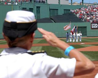 | Keywords: US Navy 050703-N-3286A-001 USS Bataan (LHD 5) Commanding Officer, Capt. Nora W. Tyson salutes the Bataan Color Guard during the playing of the National Anthem.jpg en Boston Mass July 3 2005 - USS Bataan LHD 5 Commanding Officer Capt Nora W Tyson salutes the Bataan Color Guard during the playing of the National Anthem at Fenway Park before the Boston Red Sox played the Toronto Blue Jays The Norfolk Va based amphibious assault ship was in Boston for a port visit and to take part in Boston's annual Harborfest festivities U S Navy photo RELEASED 2005-07-03 050703-N-3286A-001 Navy http //www navy mil/view_image asp id 25884 U S Navy photo PD-USGov-Military-Navy 2005 Boston Red Sox season Military in Massachusetts Crew of USS Bataan LHD-5 Nora Tyson Salutes |