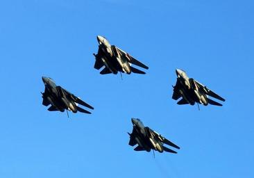 | Keywords: US Navy 050719-N-5345W-069 Four F-14B Tomcats perform a diamond formation fly-by.jpg en Atlantic Ocean July 19 2005 Four F-14B Tomcats assigned to the Swordsmen of Fighter Squadron Three Two VF-32 perform a diamond formation fly-by at the conclusion of Carrier Air Wing Three CVW-3 fly-off aboard the Nimitz-class aircraft carrier USS Harry S Truman CVN 75 The current underway-period marks the final time the F-14 Tomcat will take part in flight operations while embarked aboard Truman VF-32 will shortly begin the process of transitioning to the newer F/A-18F Super Hornet Truman is currently conducting carrier qualifications and operations off the East Coast and is also participating in a Joint Task Force Exercise JTFEX with USS Theodore Roosevelt CVN 71 JTFEX is a key component in the training cycle of an aircraft carrier and carrier air wing in the U S Navy Fleet Response Plan U S Navy photo by Photographer's Mate 3rd Class Kristopher Wilson RELEASED 2005-07-19 050719-N-5345W-069 Navy http //www navy mil/view_image asp id 26385 U S Navy photo by Photographer's Mate 3rd Class Kristopher Wilson PD-USGov-Military-Navy Aircraft formation flight of F-14B Tomcat Fighter Squadron 32 United States Navy |