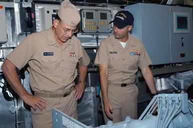 | Keywords: US Navy 050719-N-9293K-002 Lt. Cmdr. Brandon S. Bryan, right, shows Vice Commander, Naval Sea Systems Command, Rear Adm. Anthony Lengerich two MTU 595 diesel engines and explains how they work.jpg en Everett Wash July 19 2005 - Commanding Officer of the Navy's newest ship christened X-Craft Sea Fighter FSF-1 Lt Cmdr Brandon S Bryan right shows Vice Commander Naval Sea Systems Command Rear Adm Anthony Lengerich two MTU 595 diesel engines and explains how they work The tour was in conjunction with the American Society Of Engineers conference demonstrating the overall process of how the X-Craft operates The crew is made up of 16 U S Navy Sailors and 10 U S Coast Guard Sailors who are permanently assigned to the ship The Sea Fighter X-Craft FSF-1 will soon be heading to their homeport of San Diego for the first time U S Navy photo by Photographer's Mate 3rd Class Jacob J Kirk RELEASED 2005-07-19 050719-N-9293K-002 Navy http //www navy mil/view_image asp id 26408 U S Navy photo PD-USGov-Military-Navy Naval Station Everett Sea Fighter ship 2005 MTU diesel engines |