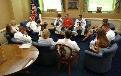 | Keywords: US Navy 050720-N-0962S-041 Chief of Naval Operations (CNO) Adm. Vern Clark and Mrs. Connie Clark spend time with the Pacific, Atlantic, Shore, and Reserve Force Sailors of the Year.jpg en Washington D C July 20 2005 - Chief of Naval Operations CNO Adm Vern Clark and Mrs Connie Clark spend time with the Pacific Atlantic Shore and Reserve Force Sailors of the Year the day prior to their promotion to Chief Petty Officer They were escorted by Master Chief Petty Officer of the Navy MCPON Terry Scott and his wife Mrs Doreen Scott U S Navy photo by Journalist 1st Class Brandan W Schulze RELEASED 2005-07-20 050720-N-0962S-041 Navy http //www navy mil/view_image asp id 26433 U S Navy photo by Journalist 1st Class Brandan W Schulze PD-USGov-Military-Navy People of the United States Navy Vern Clark |
