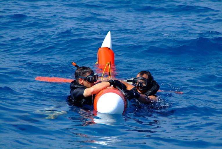 Keywords: US Navy 050728-N-4772B-073 Quartermaster 2nd Class Jeremy R. Spaulding and Personnelman 2nd Class Gerardo Arbulu retrieve a BQM-74E aerial drone following an air defense exercise.jpg en Java Sea July 28 2005 Quartermaster 2nd Class Jeremy R Spaulding and Personnelman 2nd Class Gerardo Arbulu both search and rescue swimmers assigned to USS Harpers Ferry LSD 49 retrieve a BQM-74E aerial drone following an air defense exercise with U S and Indonesian naval forces during the Indonesia phase of exercise Cooperation Afloat Readiness and Training CARAT CARAT is a regularly scheduled series of bilateral military training exercises with several Southeast Asia nations designed to enhance interoperability of the respective sea services U S Navy photo by Journalist 2nd Class Brian P Biller RELEASED 2005-07-28 050728-N-4772B-073 Navy http //www navy mil/view_image asp id 26620 U S Navy photo by Journalist 2nd Class Brian P Biller PD-USGov-Military-Navy Images from US Navy location Java Sea Personnelman BQM-74 Chukar |