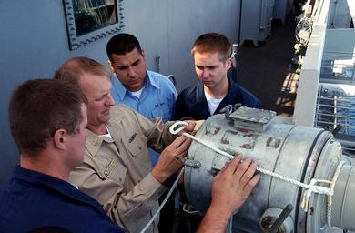| Keywords: US Navy 050728-N-0555B-084 Senior Chief Quartermaster Jace Loucks instructs several Sailors on the proper method to attach a snap hook to the lanyard of a search light aboard the Nimitz-class aircraft carrier USS Ronald Reagan.jpg en Pacific Ocean July 28 2005 - Senior Chief Quartermaster Jace Loucks instructs several Sailors on the proper method to attach a snap hook to the lanyard of a search light aboard the Nimitz-class aircraft carrier USS Ronald Reagan CVN 76 Reagan and embarked Carrier Air Wing One Four CVW-14 are currently underway conducting Tailored Ships Training Availability TSTA U S Navy photo by Photographer's Mate Airman Apprentice Christopher D Blachly RELEASED 2005-07-28 050728-N-0555B-084 Navy http //www navy mil/view_image asp id 26694 U S Navy photo by Photographer's Mate Airman Apprentice Christopher D Blachly PD-USGov-Military-Navy Aboard USS Ronald Reagan CVN-76 |