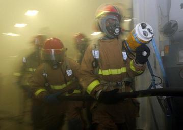 | Keywords: US Navy 050728-N-9907G-004 Fire party Sailors use a Naval Firefighting Thermal Imager (NFTI) while entering the smoke-filled jet propulsion shop during a General Quarters (GQ) drill aboard the Nimitz-class aircraft carrier USS.jpg en Atlantic Ocean July 28 2005 - Fire party Sailors use a Naval Firefighting Thermal Imager NFTI while entering the smoke-filled jet propulsion shop during a General Quarters GQ drill aboard the Nimitz-class aircraft carrier USS Harry S Truman CVN 75 Truman is currently conducting carrier qualifications and sustainment operations off of the East Coast U S Navy photo by Photographer's Mate 2nd Class Floyd Grimm RELEASED 2005-07-28 050728-N-9907G-004 Navy http //www navy mil/view_image asp id 26704 U S Navy photo by Photographer's Mate 2nd Class Floyd Grimm PD-USGov-Military-Navy EEV P4428 Aboard USS Harry S Truman CVN-75 |