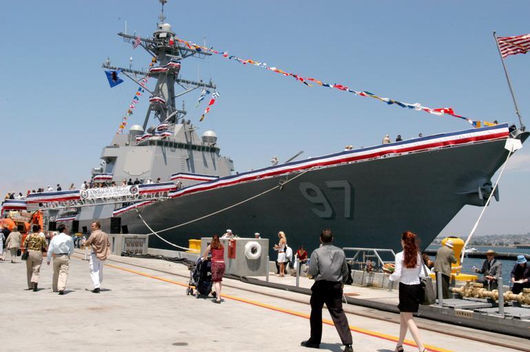Keywords: US Navy 050730-N-3672K-418 The Navy's newest Arleigh Burke-class destroyer, USS Halsey (DDG 96) is commissioned at Naval Station North Island.jpg en San Diego Calif July 30 2005 The Navy's newest Arleigh Burke-class destroyer USS Halsey DDG 97 is commissioned at Naval Station North Island The ceremony marked the formal entrance of the guided missile destroyer into the fleet The ship was named after U S Naval Academy graduate Fleet Adm William Bull Halsey Jr who commanded South Pacific Force and South Pacific Area during World War II Halsey is capable of fighting air surface and subsurface battles simultaneously and the ship contains a number of offensive and defensive weapons designed to support maritime defense needs well into the 21st century U S Navy photo by Lithographer's Mate 1st Class John P Kass RELEASED 2005-07-30 050730-N-3672K-418 Navy http //www navy mil/view_image asp id 26751 U S Navy photo by Lithographer's Mate 1st Class John P Kass PD-USGov-Military-Navy Commissioning of USS Halsey DDG-97 |